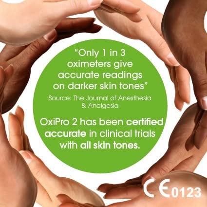 - Through clinical trials the OxiPro finger tip pulse oximeter has been shown to accurately read blood oxygen levels and pulse rates with users of all skin tones.